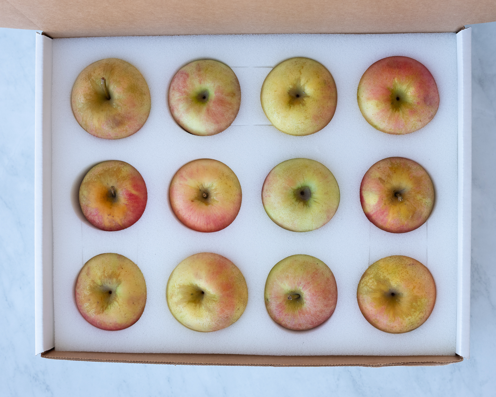 These Ludacrisp® apples from the Blue Ridge region of North Georgia are a hybrid of Honeycrip and Fuji. They have a complex blend of sweet and juicy with tropical undertones that are both rich and refreshingly different. Great for snacking, salads, and pies. Each box contains 12 apples. Shipping included.